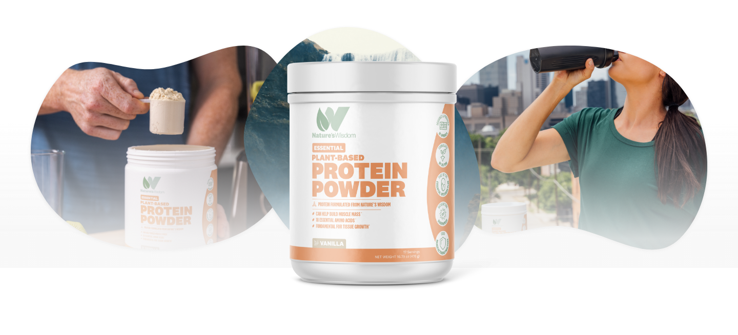What are the benefits of Nature's Wisdom's Essential Plant-Based Protein Powder?